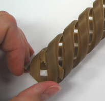 A human factors study was required on the layout and ease of use of small buttons that were to go into an electronic device. A tool such as this one, with several hand actions, was cut out of plastic and the buttons were cast from the same durometer material that would be used in production. Several patters and button shapes were quickly created so that the optimal layout could be selected by user research groups.